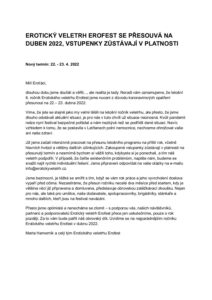EROTICKÝ VELETRH EROFEST SE PŘESOUVÁ NA DUBEN 2022, VSTUPENKY ZŮSTÁVAJÍ V PLATNOSTI